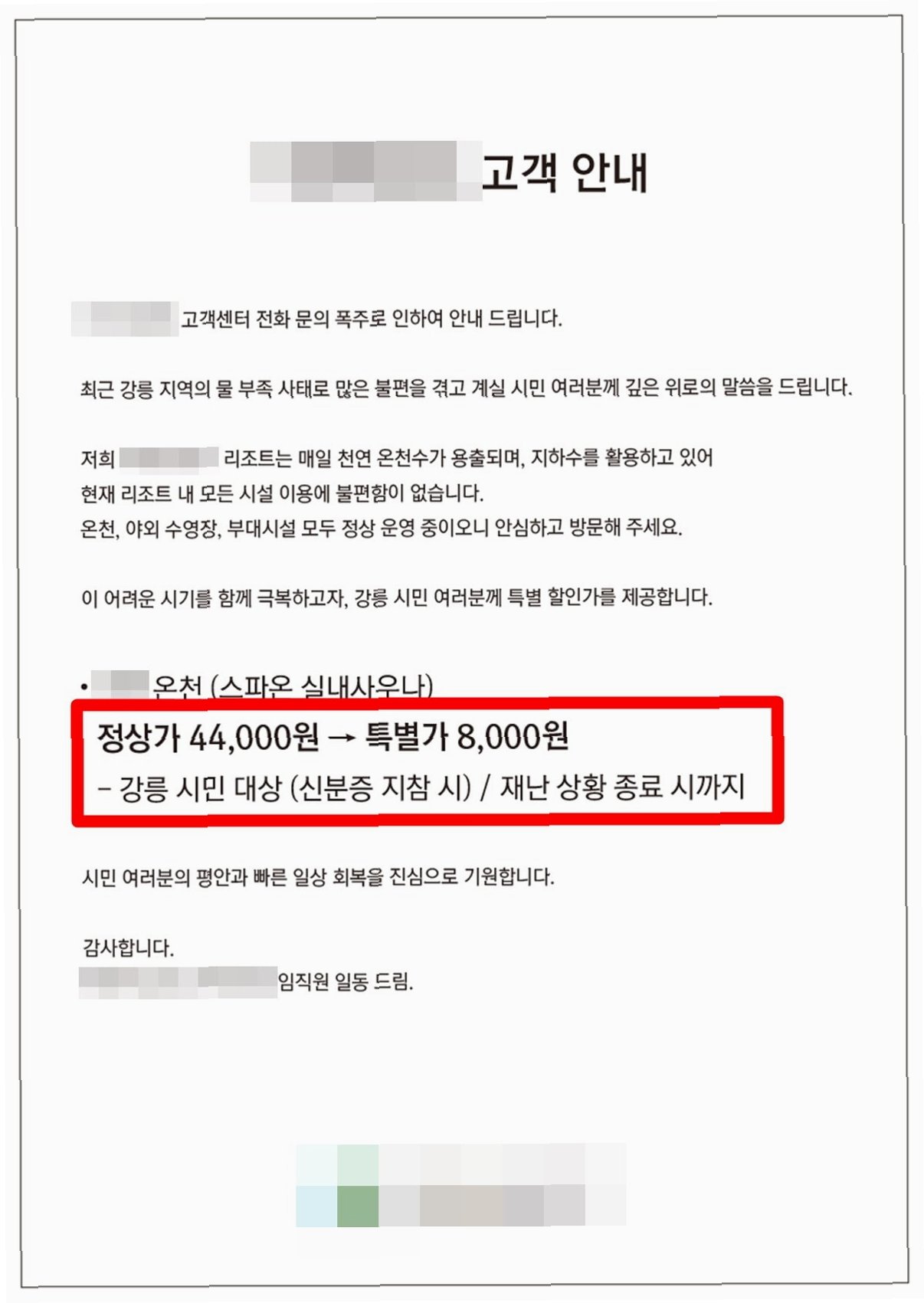 리조트 측은 공지를 통해 강릉 시민들에게 깊은 위로의 말씀을 전했습니다. "최근 강릉 지역 물 부족 사태로 불편을 겪고 계실 시민 여러분께 깊은 위로의 말씀을 드린다"는 문구에서 진심이 느껴집니다. 또한, 리조트 내 모든 시설 이용에 불편함이 없음을 강조하며, 온천, 야외 수영장 등 다양한 부대시설을 정상 운영하고 있음을 알렸습니다. 이러한 적극적인 소통은 시민들의 불안감을 해소하고, 리조트에 대한 긍정적인 인식을 심어주는 효과를 가져옵니다.