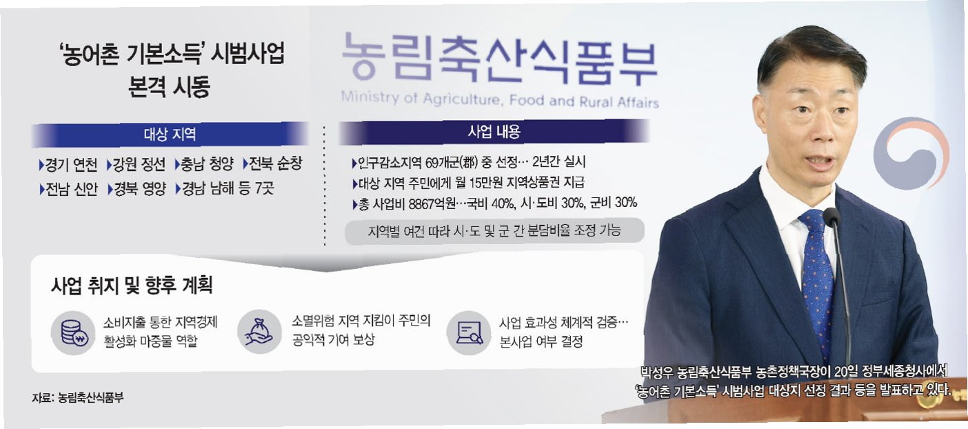 농어촌기본소득 시범사업이 7개 지역에서 시작됩니다. 지역 주민에게 월 15~20만원을 지급하며, 지역의 자립을 돕는 다양한 시도가 이루어질 예정입니다. 정부는 지속적인 지원과 평가를 통해 농어촌의 지속 가능한 발전을 지원할 것입니다.
