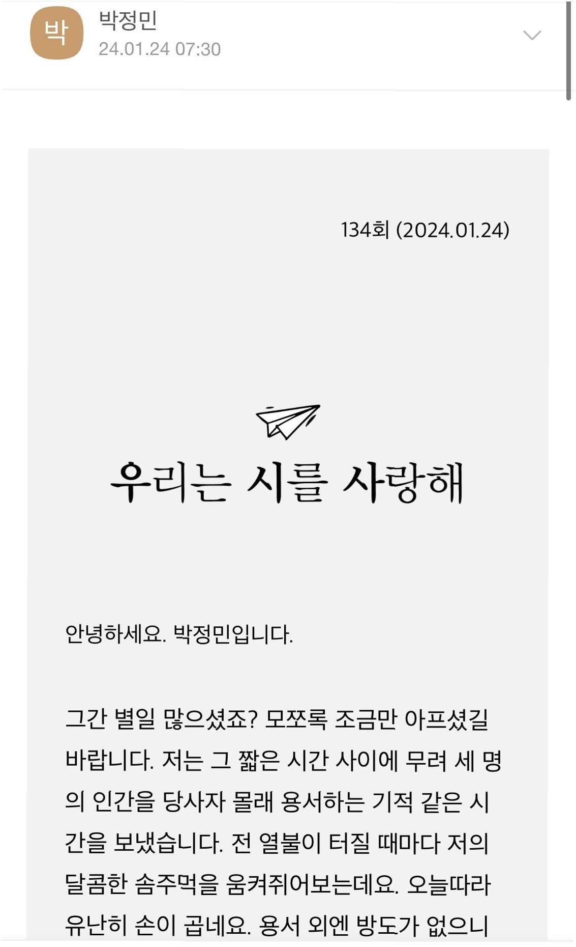 사나의 질문, 박정민의 솔직한 답변
