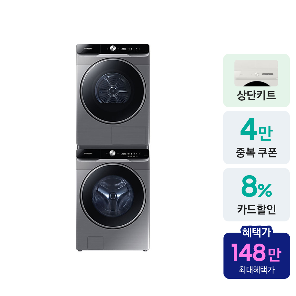 [삼성전자 공식파트너] 으뜸효율 환급 대상 세제자동투입이 되고 건조기의 양방향 도어 설정이 되는 다기능의 상품이면서 합리적인 가격의 실속형 세탁기 건조기 세트