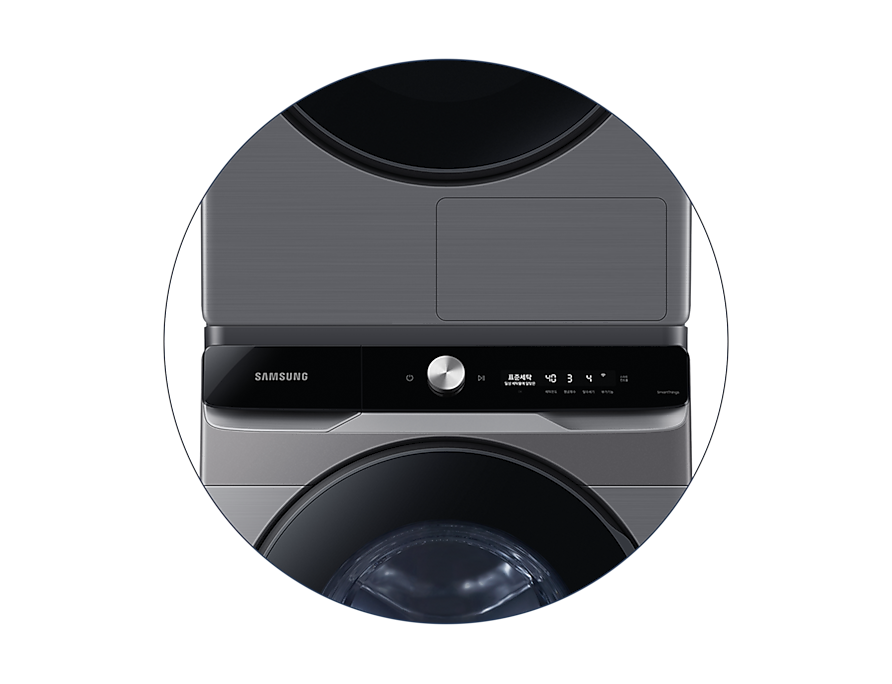 21kg 세제자동투입 세탁기와 17kg 양방향도어 건조기로 구성된 직렬설치 가능한 실속형 세탁기건