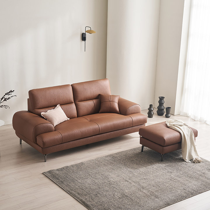 [라이브] 삼익가구 베이번 천연 통가죽 소파 스툴포함, 머드그레이, 3인용 : 삼익가구몰