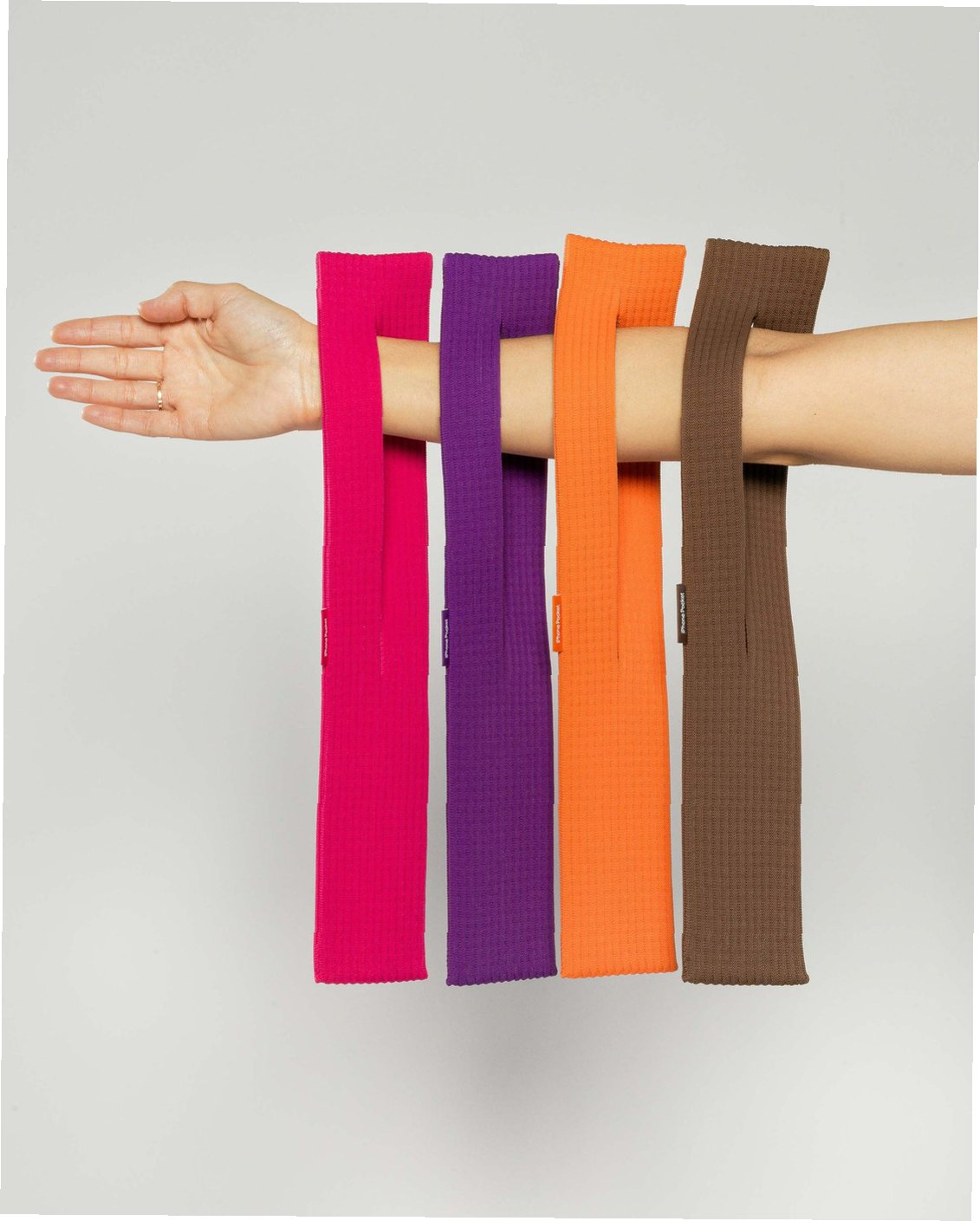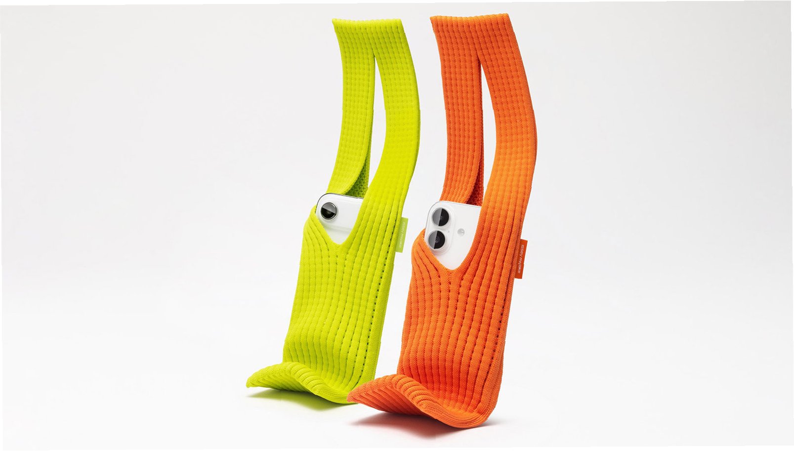 A.3D 니팅 기술을 사용한 천 소재 파우치로, 아이폰과 소형 소지품을 담을 수 있는 슬링 형태의 웨어러블 액세서리입니다. 짧은 스트랩과 긴 스트랩 두 가지 버전으로 출시되었습니다.