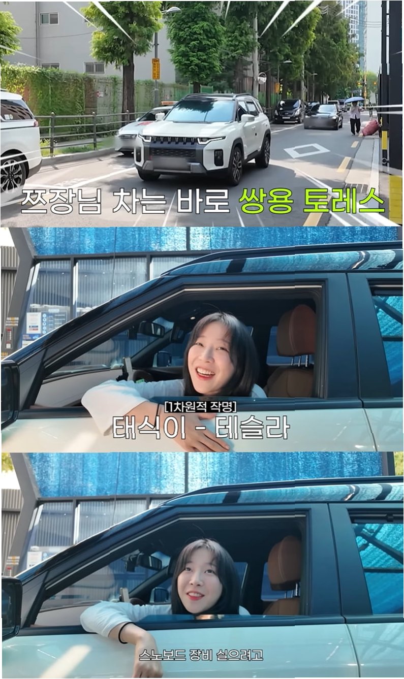 A.쯔양은 스노보드 장비를 싣기 위한 넓은 공간과 실용성을 고려하여 토레스를 선택했습니다.