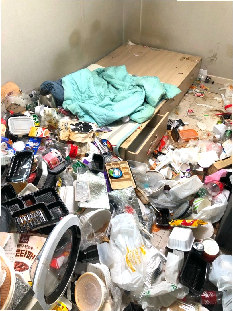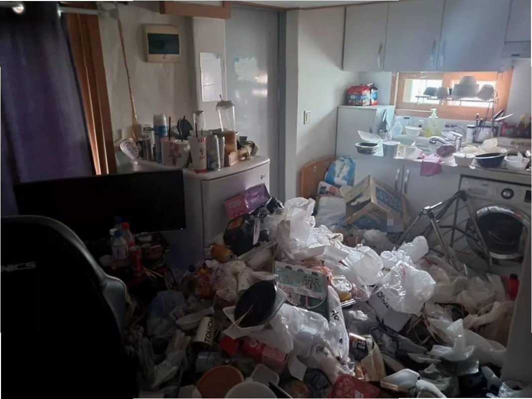 믿을 수 없는 현실: 쓰레기 더미로 뒤덮인 원룸