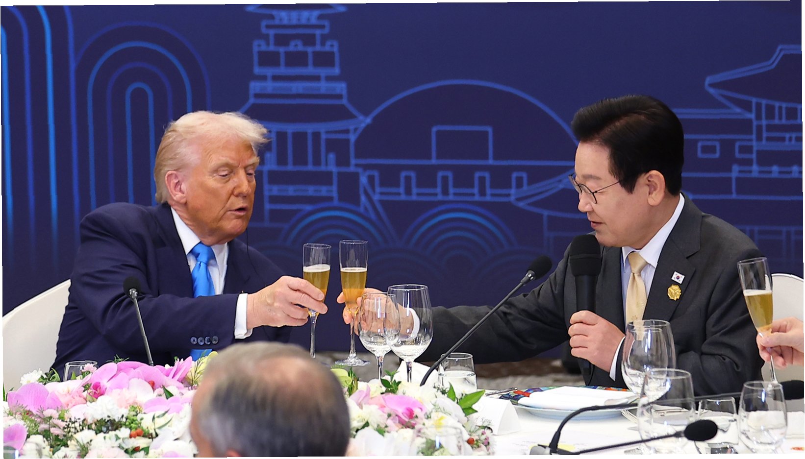 트럼프 대통령은 객실에서 휴식을 취한 후, 힐튼호텔 그랜드볼룸에서 열린 정상 특별만찬에 참석했습니다. 만찬 메뉴는 경주 천년한우 등심, 경주 남산 송이버섯, 포항 구룡포 광어, 영월 오골계와 트뤼프(송로버섯) 만두, 지리산 양식 캐비어 등을 곁들인 최고급 양식 코스요리로 구성되었습니다. 만찬 자리에서 트럼프 대통령은 음식 맛에 대한 칭찬을 아끼지 않았으며, 호텔 직원들에게 먼저 기념 촬영을 제안하는 등 긍정적인 모습을 보였습니다. 이러한 행동은 격식 있는 자리에서도 친근함을 잃지 않는 그의 외교적 태도를 보여줍니다.