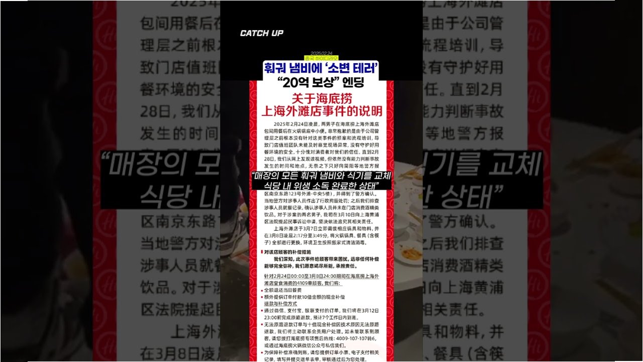 사건은 2월, 중국 다른 지역에서 상하이로 놀러 온 탕 군과 우 군에 의해 시작되었습니다. 이들은 하이디라오 매장에서 훠궈 냄비에 소변을 보는 충격적인 행위를 저질렀고, 이 장면을 SNS에 올리면서 사건은 걷잡을 수 없이 커졌습니다. 경찰은 두 사람을 행정 구류 처분했고, 하이디라오 측은 즉각적인 조치를 취했습니다. 해당 매장의 모든 냄비와 식기를 교체하는 것은 물론, 해당 시간대에 식사한 고객 4,109건의 주문을 전액 환불하고 결제액의 10배를 보상하는 파격적인 조치를 단행했습니다. 하지만 사건의 여파는 쉽게 가라앉지 않았고, 하이디라오 측은 두 학생과 부모를 상대로 공식 사과와 함께 40억 대 손해배상 소송을 제기하기에 이르렀습니다.