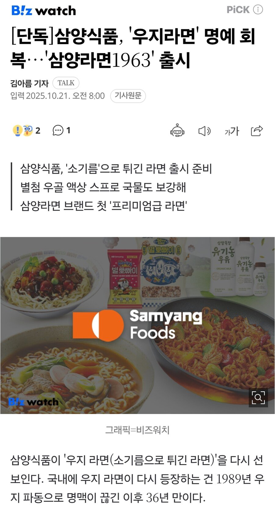 프리미엄 라면의 탄생: 삼양라면 1963의 차별점