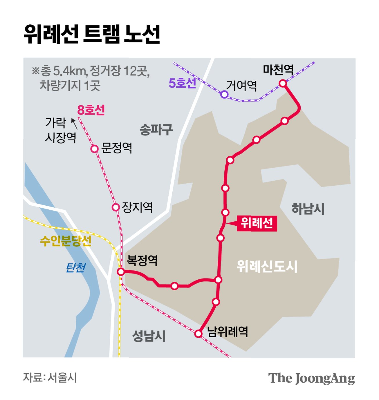 A.마천역(5호선)에서 출발하여 복정역(8호선·수인분당선)과 남위례역(8호선)을 연결합니다.