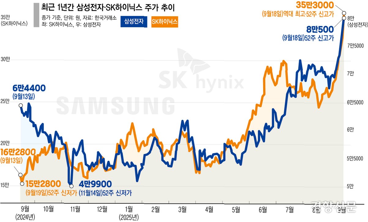 삼성전자와 SK하이닉스는 챗GPT 개발사인 오픈AI의 '스타게이트' 프로젝트 협력 소식이 알려진 이후 동반 신고가를 기록하며 AI 시대의 주역임을 입증했습니다. 이러한 협력은 두 회사의 미래 성장 동력을 강화하는 중요한 계기가 될 것으로 보입니다. 특히, 삼성전자는 4년 9개월 만에 9만원대 주가를 회복했고, SK하이닉스는 40만원대를 처음으로 돌파하며 시장의 긍정적인 평가를 받았습니다.