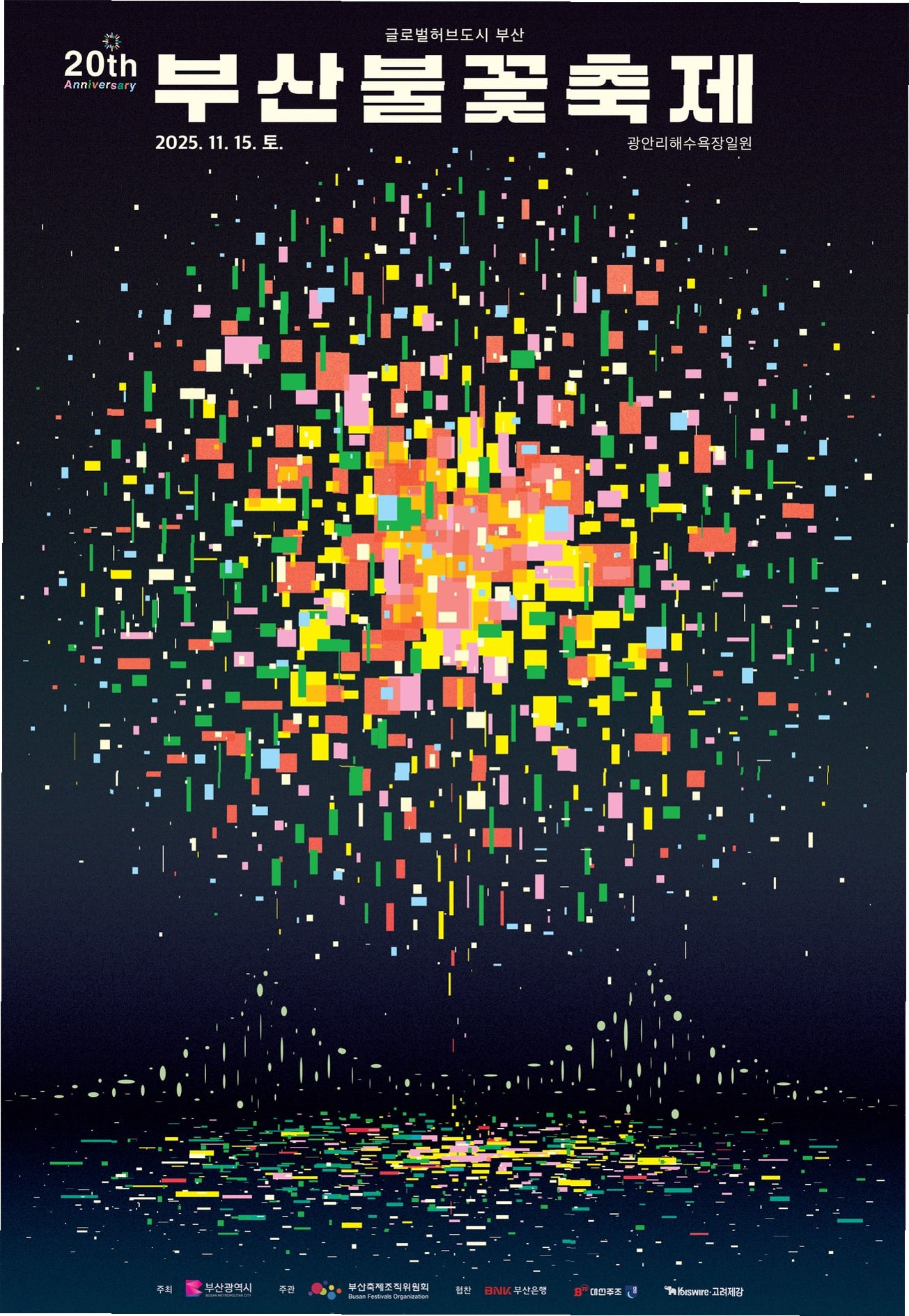 올해로 20회를 맞이하는 부산불꽃축제가 드디어 그 화려한 막을 올립니다! 잊을 수 없는 감동과 아름다움을 선사할 축제가 바로 눈앞에 다가왔습니다. 부산 광안리해수욕장 일원에서 펼쳐질 이번 축제는, 15일에 여러분을 기다리고 있습니다. 특별한 20주년을 기념하기 위해 다채로운 프로그램들이 준비되어 있으며, 역대급 스케일로 여러분을 맞이할 예정입니다. 부산의 밤하늘을 수놓을 불꽃들의 향연, 놓치지 마세요!