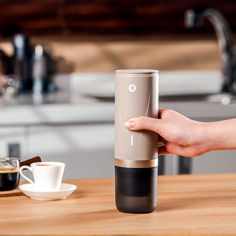 로스티코 휴대용 커피머신: 황홀한 골든베이지, 캠핑과 일상을 물들이는 마법