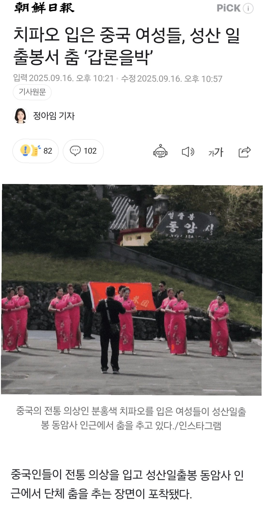 성산일출봉을 들썩이게 한 치파오, 춤사위는 논란을 넘어 새로운 문화를 만드나?