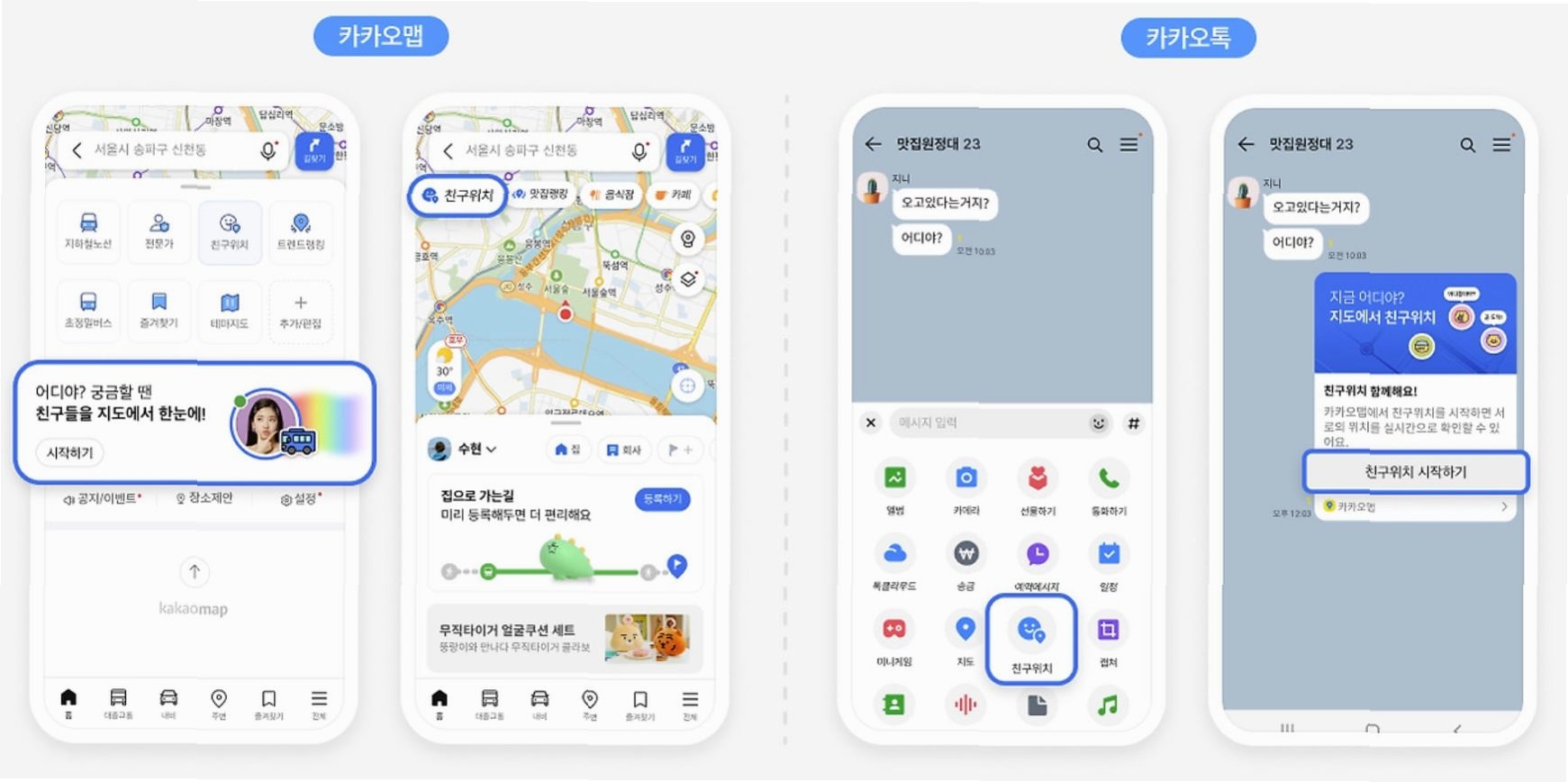Q.카카오맵 '친구위치' 서비스는 어떻게 시작하나요?